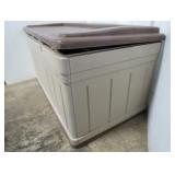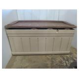 Suncast deck storage box with contents