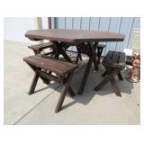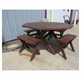 Outdoor table with four benches