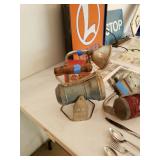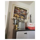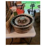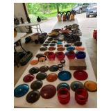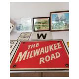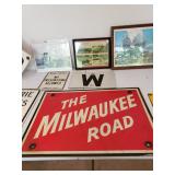 Buy it now: BRONZE STEAM ENGINE BELL - $500. VINTAGE RAILROAD CROSSING SIGN W/CAT EYE GLASS MARBLE REFLECTORS $500 Sold UNION POTBELLY CABOOSE STOVE $1000 ------------------------------------------------------- Railroad memorabilia Lionel lighted signs Vintage Railroad lanterns Adlake on Sweating Lamps Adlake locks Dressel lanterns Railroad lanterns globes Railroad lanterns lenses Railroad books Railroad seats Railroad level Railroad lantern lamp Railroad oil cans Vintage Milwaukee Road sign Railroad safety kit No Tresspassing - Private Property - Soo Line metal sign Lionel train catalogs - dating to the 1950's. CRAFTSMAN TOOLS Sears air compressor Craftsman power washer Craftsman variable speed grinder center Makita Recipro saw DeWalt chop saw Mason jars Motor oil MK '70 Tile cutter Exercise bike Craftsman tool box Tool boxes Roto spred Gravely tractor Arians snowblower Traffic - streettired light Tires - 14 in rim's Hoses Coolers Garden tools Wooden horses Welding cart AlC sandy jet Indian fire pump Railroad shanty wooden chair Radiant 8 portable heater Hub caps 1965 Corvette model Vintage ice cream parlor chairs table Vintage Pepsi thermometer