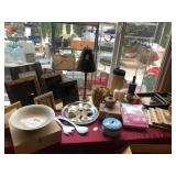 Spotlight... Entire contents of this beautifully furnished home to be offered for sale - Two Days Only! Impressive Century Dining set & mirrored display cabinets filled with luxury goods / collections including Lalique, Wedgwood, Lenox, and a superb set of Minton, Laurentian china, service for 10. Exceptional furniture including two Balinese teak wood armoires, marble carved wood coffee table and matching foyer table, mahogany king sleigh bed, designer light fixtures & lamps, antique church pew, whimsical hand painted French day bed, inlaid collectors cabinet, contemporary wall display unit / storage cabinets, executive home office furnishings, charming wood work tables and desks, antique wagon wheel on metal stand, Mid Century full size bed, Victorian marble top dressers, suede bar stools with full backs, leather dining chairs, contemporary ebonized oak coffee table, Kimball baby grand piano and bench in black - excellent condition and expertly maintained! A monumental gilt metal & marbleized glass chandelier! Amazing fine art & statuary including oil paintings, large vintage framed French posters, Jim Lewk art metal sculpture, Roark Gourley art piece, Susan Hamilton Todd horse painting, Popi Cotrell, “Starry, Starry Night” oil painting, and numerous others. Fabulous garden & patio fixtures, worldly décor, massive "cook's" kitchen filled with appliances, fine cookware & serving pieces, incredible selection of women's designer clothing & accessories - like walking into a contemporary, high-end boutique, modern shelving / storage, electronics & gaming items, garage, outdoor & sporting goods. Vast household goods, useful items, and coveted collectibles! Too many items to list! No early sales.