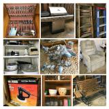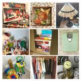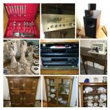This house has some exceptional antique and vintage finds. Beautiful antiques and displays. Antique Ice chest converted to stereo cabinet, round oak table and four chairs, antique oak china cabinet, living room furniture, glass mirrored display cabinet, Bose Acoustimass 5 Series II speaker system, vintage Pioneer turntable, Scott Stereo Receiver R-376, Nikon camcorder, dolls, vintage Barbie, Legos, vintage and antique baby clothing, vintage costume jewelry, kitchen goods, linens, toys, brass lamps, end tables, antique platters , carnival glass, crystal, fine china, CDs, and much more. Appliances new or nearly new in boxes, clothing, a shredder and TV tables, a daybed, cedar chest, solid wood secretary, caned rocker, sewing machine and supplies, games, vintage nativity, Christmas ornaments, a Char-broil grill and more.