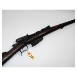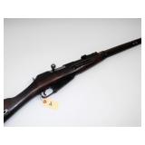 64 (CR) Russian Mosin Nagant 7.62X54 Bolt action with front and rear sights, folding bayonet, sling, 21" barrel, SN A18960. Condition: Lots of heavy dings and scratches. Bore is frosty with good rifling.