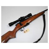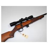 9 (R) Marlin 25N 22 LR Bolt action with front and rear sights, mag, 4X32 scope on grooved receiver, 22" barrel, SN 01281162. Condition: Several spots of scattered rust on barrel. Overall great condition. Excellent bore and action.