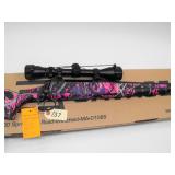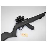16 (R) Thompson Center TCR22 22 LR Semi-auto with front and rear sights, Ruger mag, Axeon scope, OD green stock, 17" barrel, SN JLM3373. Condition: Like new.