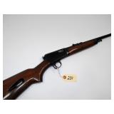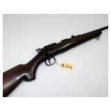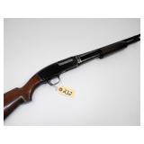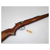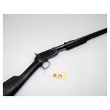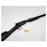 17 (CR) Winchester 06 22 S.L.LR. Pump action take down tube fed with front and rear sights, 20" barrel, SN 654996B. Condition: Lots of wear. Initials on stock. Good bore and action.