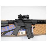 23 (R) Palmetto PA-15 5.56 Pistol Semi-auto AR style with mag, NcStar scope, arm brace, flash hider, 8 1/2" barrel, SN PA147527. Condition: New with box.