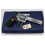26 (R) Colt King Cobra 357 Mag Revolver Stainless steel 6-shot double action with adjustable sight, rubber Colt grips, 6" barrel, SN CK0808. Comes with case. Condition: Used but in great condition.
