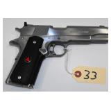 68 (R) Colt Government 45 Auto Pistol MK IV Series 70 stainless steel semi-auto with hammer, mag, checkered bushing, 5" barrel, SN 73B3640. Comes with case. Condition: Like new.
