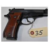 35 (R) Beretta 84 380 Pistol Double action with hammer & mag, wood grips, 3 3/4" barrel, SN B70852Y. Condition: Used but in great condition.