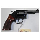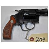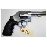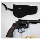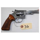 36 (R) Smith & Wesson 63 22 LR Revolver Stainless steel 6-shot double action with adjustable sight, pinned & recessed, walnut grips, 4" barrel, SN 62536. Condition: Used but in excellent condition.