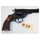 38 (R) H&R 926 22 LR Revolver Top break 9-shot double action with wood grips, 4" barrel, SN AN97595. Condition: Used but in great condition.