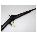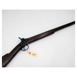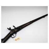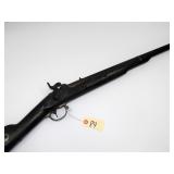 49 Unmarked 20 Ga Percussion Single barrel muzzle loader, 33" barrel. Condition: Lots of wear but still a solid gun. Fore arm has several cracks.