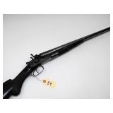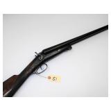 51 W. Richards 12 Ga Antique side-by-side breech load under lever, double hammers & triggers, 30" barrel. Condition: Lots of wear & finish loss but remains a solid gun. Frosty bore.