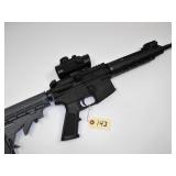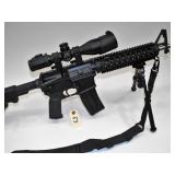 53 (R) A nderson AM-15 5.56/223 Semi-auto AR style rifle with Palmetto upper, mag, front sight, Accu-shot 3X12X42 scope with yardage selector, muzzle brake, 3lb single stage trigger, fully adjustable stock, sling, bipod, picatinny rails, 16" barrel, SN 16011170. Condition: Used but in excellent condition.