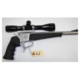 62 (R) Thompson Center Super 14 223 Rem Pistol Stainless steel single shot with front sight, Burris 10X scope, 13" ported barrel, SN S16912. Comes with a case. Condition: Used but in great condition.