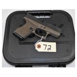 72 (R) Glock 42 380 Auto Pistol Semi-auto with night sights, 2-mags, textured grips, 3" barrel, SN ABMY764. Comes with case. Condition: Nearly unfired.
