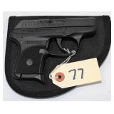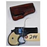 12 (R) Davis DM-22 22 Mag Derringer Tip up barrel, birds head grip, holster, 2 3/8" barrel, SN 319224. Condition: Used and in good condition.