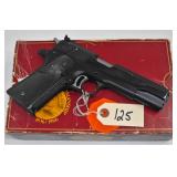 29 (R) Colt Lightweight Commander 45 Pistol MK IV Series 80 semi-auto with hammer, mag, 4 1/2" barrel, SN FL10350. Condition: Like new with case & sleeve.