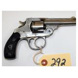 57 (CR) U.S. Revolver 32 Cal Revolver Top break 5-shot double action, 3" barrel, SN 41418. Condition: Lots of finish loss. Action is tight. Name scratched in frame.