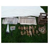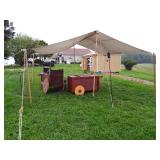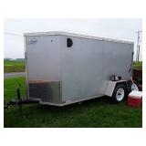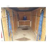 Selling at 9:30 AM Reinactment & Camping Materials & Supplies Includes Bluegrass v-nose enclosed trailer, tents (with stakes, ropes & tools), cooking equipments including storage box, lanterns/lamps and more.