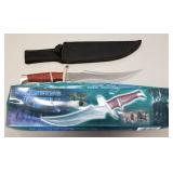 543 Kinfolks USA 4330 Fixed Blade Knife In new leather sheath.