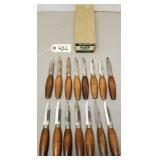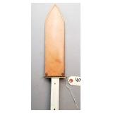 582 Marked Fillet Knife with Wooden Handle Appears to be resharpened. In new leather sheath.