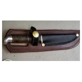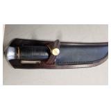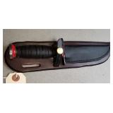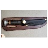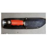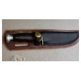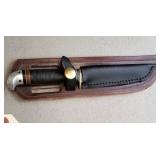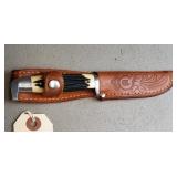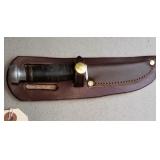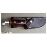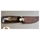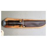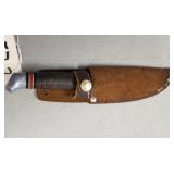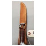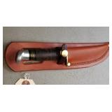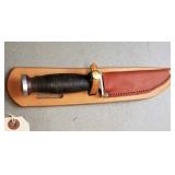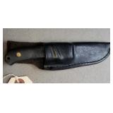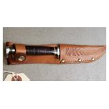508 West-Out Made in USA Stamped Fixed Blade Knife With new leather sheath.