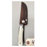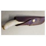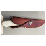 519 Unmarked Bone Handle Type Fixed Blade Knife In new leather sheath.