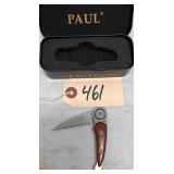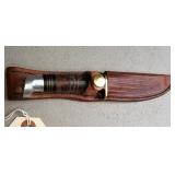 548 RH Pal -36 Made in USA Marked Fixed Blade Knife In new leather sheath.