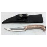 549 Korium Japan Faintly Marked Fixed Blade Knife In new leather sheath.