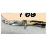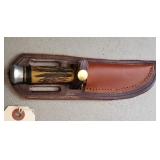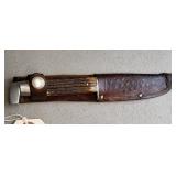 526 Jabre Jolingen 131 American Knife Co Germany Knife Fixed blade. Bone handle type. In original leather sheath.