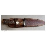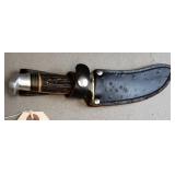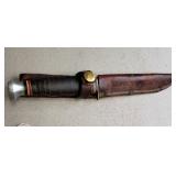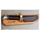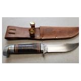 502 Imperial USA Stamped Fixed Blade Knife With new leather sheath.