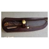 511 Kinfolks USA Stamped Fixed Blade Knife With original, stamped, leather sheath.