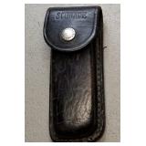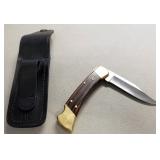 520 Schrade USA LB7 Marked Folding Knife In cloth holster.