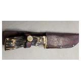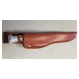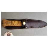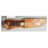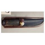 504 Kinfolks 315 USA Stamped Fixed Blade Knife In new leather sheath.