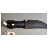 514 Kinfolk 315 Stamped Fixed Blade Knife With Kinfolk stamped original leather sheath.