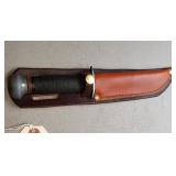 518 Imperial Prov. R1 USA Marked Fixed Blade Knife In original leather sheath.