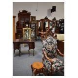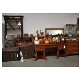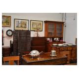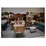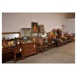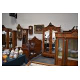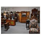Saturday May 18th @ 5:30 P.M. Preview: Friday 10 A.M. - 5 P.M. Saturday 12 Noon - 5:30 P.M THIS AUCTION WILL BE IN HOUSE ONLY--NO ONLINE BIDDING Antiques, Mid-Century Furniture, Sterling, Clocks, Lamps, & Smalls: WE WILL BE OFFERING OVER 200 LOTS AT THIS AUCTION INCLUDING A LARGE NICE CARVED FRENCH OAK GLASS DOOR CABINET, 3 CARVED FRENCH WALNUT ARMOIRES, 5 PC. FRENCH PARLOR SET, 3 FRENCH STYLE CURIO CABINETS, FRENCH STYLE KIDNEY SHAPE DESK, VICTORIAN CORNER ETAGERE CURIO CABINET, PAIR CARVED FRENCH LADY'S CHAIRS, 1920'S WALNUT FIGURAL PULL UP TOP BAR CABINET, NICE ASSORTMENT OF FLOOR LAMPS INCL.: TIFFANY STYLE, VICTORIAN, & SPANISH STYLE, 3 FRENCH BEDS, ANTIQUE INLAID MOROCCAN FLIP TOP GAME TABLE, OAK 2 WEIGHT GRANDFATHER CLOCK, 2 AM. OAK MORRIS CHAIRS, MISSION OAK 2 DOOR CHINA CABINET, SIGNED LIMBERT MISSION OAK ROCKER, LARGE MAHOGANY BREAKFRONT CHINA CABINET, 4 PC MAHOGANY BEDROOM SET, 1930'S 2 PC. WALNUT BEDROOM SET, AM. OAK ROUND DINING TABLE W/ 6 CHAIRS, ANTIQUE CARVED MARBLE TOP WASHSTAND W/ MIRROR W/ MOUNTED SINK, SMALL RARE MACEY AM. OAK ROLL TOP DESK, TALL VICTORIAN WALNUT HALLTREE, NICE VICTORIAN WALNUT MARBLE TOP SIDEBOARD W/ MIRRORED BACK, 1920'S TALL BACK WALNUT THRONE CHAIR W/ ANIMAL CARVING, FANCY AM. OAK FAINTING SOFA, MID CENTURY BEDROOM SET, MID CENTURY PARLOR CHAIR, MID CENTURY CHROME PARLOR CHAIR, HOWARD MILLER 2 WEIGHT MID CENTURY CHROME WALL CLOCK, PAIR ITALIAN BURLED NIGHTSTANDS, 1900'S 2 DOOR PIE SAFE CABINET, PAIR CAST IRON WINGED GRIFFIN GARDEN BENCHES, NICE ASSORTMENT OF LEADED GLASS WINDOWS, SMALL COLLECTION OF LALIQUE, LARGE COLLECTION OF DESIMONE ITALIAN PORCELAIN, NICE SELECTION OF ANTIQUE WALL & MANTLE CLOCKS INCL.: GUSTAVE BECKER 2 WEIGHT WALL CLOCK, ANTIQUE CAST IRON GERMAN SHEPARD DOOR STOP, SMALL SET OF WALLACE GRAND BAROQUE STERLING FLATWARE, 3 PC. 800 SILVER TEA SET, SMALL 800 SILVER FLATWARE SET, SMALL COLLECTION OF STERLING & COSTUME JEWELRY, NICE SELECTION OF 1920'S TO 1930'S HANGING LAMPS, SMALL COLLECTION OF WELLER & ROSEVILLE POTTERY, ANTIQUE COBALT DECORATED CROCK BUTTER CHURN, VINTAGE BATTERY OPERATED PIG CHEF & BARTENDER TOYS IN ORIGINAL BOXES, ANTIQUE CAST IRON CATAPILLAR BULLDOZER RADIATOR (GREAT GARDEN ART), LONG BEACH CAST IRON FIRE HYDRANT, LARGE COLLECTION OF HAND PAINTED PORCELAIN, PAIR BRONZE HORSE HEAD BOOKENDS, SMALL AUTOMATON CLOCK & CARRIAGE CLOCK, ANTIQUE ACOMA INDIAN POT W/ BIRD DECORATION, & MUCH MUCH MORE!!! NICE SELECTION OF PAINTINGS, PRINTS, & MIRRORS PLEASE MAKE SURE TO PREVIEW THIS AUCTION BECAUSE THERE IS A LOT TO SEE THAT IS NOT LISTED!!! DON'T FORGET TO CHECK US OUT ON FACEBOOK & INSTAGRAM