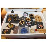 Jewelry Extravaganza - 50% off original prices Sterling Silver Jewelry - Amazing pieces including necklaces, earrings, pins, bracelets and rings, many vintage and with some newer pieces mixed in. Reasonably Priced Sterling Silver Jewelry - quality necklaces, earrings, pins, bracelets and rings, mostly vintage and with some newer pieces mixed in, all $30.00 or less after the 50% discount. Vintage Costume Jewelry - Hundreds of fabulous earrings, rings, brooches, bracelets and necklaces ranging in age from the turn of the century through the 1980s. Many pieces from the glamorous Retro (1935-1950s) and bold Art Modern (1945-1960s) periods of costume jewelry history. There are signed pieces including Coro, Lisner, Hobe, Kramer, Monet, Napier, Trifari, Vendome, Weiss and more. Boutique Costume Jewelry - Wonderful newer pieces including statement necklaces, earrings, bracelets and rings. So many fun styles! Czech Rhinestone Jewelry - Perfect for special occasions, this jewelry came straight from the factories in the Czech Republic and they are striking pieces in interesting color combinations including statement necklaces, earrings, bracelets and brooches. Reasonably Priced Vintage Costume Jewelry - quality earrings, pins, necklaces and bracelets, all $12.00 per piece or less after the 50% discount Handcrafted Jewelry - 50% off original prices Windy City Jewelry - Vintage glass bead and crystal jewelry from 1920-1960 which has been transformed into unique designs which are wearable today. Most pieces are one-of-a-kind or of limited quantity. The vintage materials are accented with new sterling silver findings and Swarovski crystals. Vintage costume jewelry pieces such as dress clips and earrings may also be incorporated into the designs. New Boutique Jewelry - 30% off original prices Sweet Romance and Ollipop jewelry is high-quality vintage-inspired costume jewelry which is manufactured in Los Angeles and sold in boutiques all over the country. Beautiful and intricate earrings, necklaces, bracelets and a few rings. Liquidation of Jewelry Making Business - 50% off original prices The artists have retired from jewelry-making and there will be lots of vintage beads, crystals, clasps, jewelry findings, broken jewelry and much more, great for projects! Handcrafted Items Flower Girls Gifts Felt floral pins which are created with the greatest attention to detail. Each pin is unique, the exact same design is never created twice. The pins feature large layered stylized flowers and eclectic floral groupings embellished with feathers, vintage earrings and charms or velvet flowers. These pins add one-of-a-kind charm to a jean jacket, coat or hat! Embellished pincushions are actually real sawdust-stuffed pincushions covered with barkcloth or jacquard fabric and topped with layers of felt, wired ribbon, vintage earrings, glass beads, buttons and feathers and given their theme with a vintage porcelain figurine. They make a great gift for that special seamstress! Even if you do not sew, the pincushions are a darling accent for a guest room. Spinster Sisters Natural products including: Rosemary Mint Shampoo Bar - a wonderful mixture of plant-based oils and essential oils. Super cleansing and moisturizing! Rosemary Mint Conditioner Oakmoss & Seaweed Face Soap - a soothing, antiseptic and restorative bar which fights acne, aging and eczema. Peppermint Tea Tree Deodorant - aluminum-free recipe with baking soda, arrowroot powder, fair-trade shea butter, coconut oil, vitamin E oil and essential oils. |