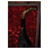 - Vintage/Antique Black Fabric Umbrella w/Large Gold Filled Handle