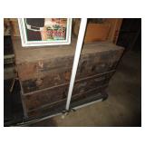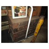 Furniture/Household: Lane cedar chest; Singer treadle sewing machine; antique nightstand; twin beds; dressers & chests of drawers; maple dry sink; end tables; steamer trunk; wood boxes & chests; rockers & other chairs; medicine cabinet; mantle clocks; table lamps; wallpaper stamps; galvanized washtubs; baskets; misc. antique & primitive items; rustic garden planters; compact refrigerator; primitives & country décor; treadmill & exercise items; Beatles & other records; old wagon wheels; many misc. items. Many boxes are still packed. Check online the day before the auction for late finds & updated pictures.