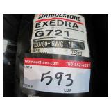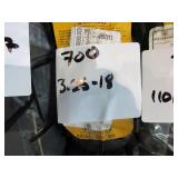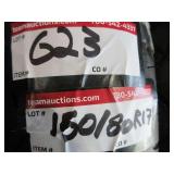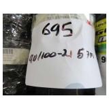 TIRES (4) Firestone 800/70R38 tires, 23 degree deep tread, on Wold Mfg. rims w/hardware, complete dual wheel setup for John Deere S Series combines (2) Firestone 28L-26 2WD rear tires & rims, for S-Series, New Firestone 480/80R50 23 degree deep tread tire, 90% tread w/repair (4) 22.5-8.25 aluminum wheels, hub pilot, polished, New 7.50-20 planter tire & rim (6) Goodyear 12.5L-15FI tires, used 1 year Goodyear 12.5L-15 tire, on 8-bolt rim, New Firestone 320/70R15 tires, on 8-bolt rim, New Goodyear 11L-15 tire, on 6-bolt rim Titan 9.5L-15SL tire, on 6-bolt rim Goodyear 9.00-16 tire, on 6-bolt rim Goodyear 11L-15FI tire, on 6-bolt rim Firestone 12.5L-15 tire, on 8-bolt rim, 18 ply rating Dunlop 31x9.75-14 airplane tire, on 6-bolt rim, replaces 9.5L-15 size Misc. implement tires on rims Firestone 7.50-20 tire, on 6-bolt rim 10-bolt dual hub, w/extra wedges, for 8960 4WD Misc. truck tires to include 11R22.5, low pro 22.5 & 11R24.5 tires