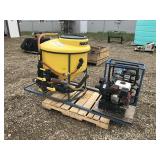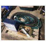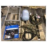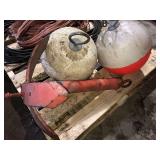 FARM SUPPORT ITEMS Raven 440 sprayer controller Raven 460 sprayer controller, NIB John Deere radar gun, side mount (12) John Deere 8000 Series suitcase weights (2) John Deere 700 kg. wheel weights, fits John Deere 8960-8970 4WD hubs John Deere 8000 Series weight bracket, 30" w/bolts (2) John Deere 8000 Series weights John Deere 30-40-50 Series weight & weight bracket John Deere hitch adapter Cat V to Cat IV (2) Rock boxes, front mount, fits 8960 & 8970 4WD tractors John Deere rolling baskets, 44', off older John Deere air drill John Deere pallet of mini hoppers, off CCS planters Square fuel tank, 120 gal., GPI pump, automatic shut-off Portable fuel tank, 300 gal., 12v, automatic shut-off, for pickup boxes, cut out for wheel wells Propane tank, for forklift Propane tanks, 60 gal & 80 gal., for trucks Several cage tanks, 270 gal. each Lincoln DC-225-3AS portable DC welder, Onan twin cylinder motor, electric start, 110v, AC outlet, leads Custom Rope 150-2R-40 tow rope, 40', 150,000 lb., steel rings on both ends, canvas cover & sleeves Trailer straps to includes New (3) 4"x30' & New (1) 4"x40' Trailer straps to includes (12) 4"x30' & (2) ratchets Trailer straps to includes (8) 4"x40' & (2) ratchets B&W aerators (screw in) (2) Large clevis's Large clevis, red Misc. electric motors