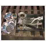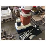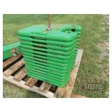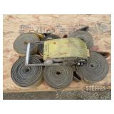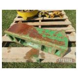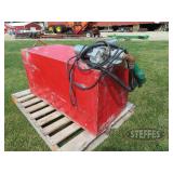FARM SUPPORT ITEMS Raven 440 sprayer controller Raven 460 sprayer controller, NIB John Deere radar gun, side mount (12) John Deere 8000 Series suitcase weights (2) John Deere 700 kg. wheel weights, fits John Deere 8960-8970 4WD hubs John Deere 8000 Series weight bracket, 30" w/bolts (2) John Deere 8000 Series weights John Deere 30-40-50 Series weight & weight bracket John Deere hitch adapter Cat V to Cat IV (2) Rock boxes, front mount, fits 8960 & 8970 4WD tractors John Deere rolling baskets, 44', off older John Deere air drill John Deere pallet of mini hoppers, off CCS planters Square fuel tank, 120 gal., GPI pump, automatic shut-off Portable fuel tank, 300 gal., 12v, automatic shut-off, for pickup boxes, cut out for wheel wells Propane tank, for forklift Propane tanks, 60 gal & 80 gal., for trucks Several cage tanks, 270 gal. each Lincoln DC-225-3AS portable DC welder, Onan twin cylinder motor, electric start, 110v, AC outlet, leads Custom Rope 150-2R-40 tow rope, 40', 150,000 lb., steel rings on both ends, canvas cover & sleeves Trailer straps to includes New (3) 4"x30' & New (1) 4"x40' Trailer straps to includes (12) 4"x30' & (2) ratchets Trailer straps to includes (8) 4"x40' & (2) ratchets B&W aerators (screw in) (2) Large clevis's Large clevis, red Misc. electric motors