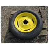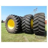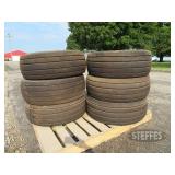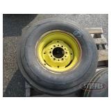 TIRES (4) Firestone 800/70R38 tires, 23 degree deep tread, on Wold Mfg. rims w/hardware, complete dual wheel setup for John Deere S Series combines (2) Firestone 28L-26 2WD rear tires & rims, for S-Series, New Firestone 480/80R50 23 degree deep tread tire, 90% tread w/repair (4) 22.5-8.25 aluminum wheels, hub pilot, polished, New 7.50-20 planter tire & rim (6) Goodyear 12.5L-15FI tires, used 1 year Goodyear 12.5L-15 tire, on 8-bolt rim, New Firestone 320/70R15 tires, on 8-bolt rim, New Goodyear 11L-15 tire, on 6-bolt rim Titan 9.5L-15SL tire, on 6-bolt rim Goodyear 9.00-16 tire, on 6-bolt rim Goodyear 11L-15FI tire, on 6-bolt rim Firestone 12.5L-15 tire, on 8-bolt rim, 18 ply rating Dunlop 31x9.75-14 airplane tire, on 6-bolt rim, replaces 9.5L-15 size Misc. implement tires on rims Firestone 7.50-20 tire, on 6-bolt rim 10-bolt dual hub, w/extra wedges, for 8960 4WD Misc. truck tires to include 11R22.5, low pro 22.5 & 11R24.5 tires