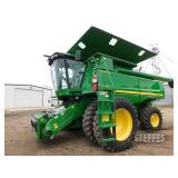 COMBINE 2015 John Deere S680 combine, premium cab, Contour-Master, enhanced air suspension seat, 2WD, TriStar rotor, AutoTrac ready, 2630 armrest display, ProDrive w/Harvest Smart, rearview camera w/Cab Cam color display, 5 spd. feeder house, deep tooth adj. chaffer, round bar concaves, 26' unload auger, LubeMinder automatic chain oiler, premium radio pkg., HID lighting, single pt. hookup, Firestone 23 degree 650/85R38 tires w/duals, 750/65R26 rear tires, 1,220 sep. hrs., 1,662 engine hrs., single owner