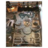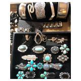 Jewelry Extravaganza! With the gracious permission of the homeowner, our caravan of costume and sterling silver jewelry will also be featured. We acquire new pieces every day and the selection has never been better. There are so many unique pieces, definitely something for everyone. An amazing collection of sterling silver estate jewelry including lots of earrings, rings, pins, pendants and necklaces, at 50% off our already reasonable prices. Styles include unique high-end pieces, Mexican and Native American designs. In addition, fabulous newer statement costume jewelry in gold tone, copper tone and rose gold tone, final clearance priced at 2/3 off. Necklaces, bracelets and earrings. |