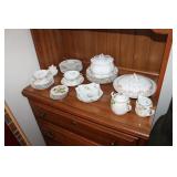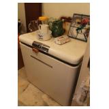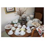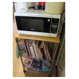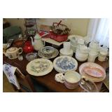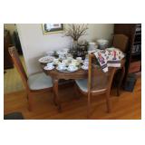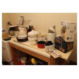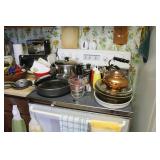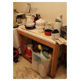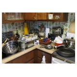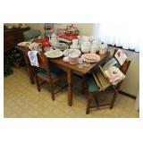 Silverplate flatware Vintage buffet Vintage kitchen table and 4 chairs Vintage china Depression glass China Bakeware Glass servingware Cutlery Vintage Sunbeam mixer Kitchen electrics Glasses Vintage kitchen Microwave Microwave cart