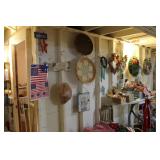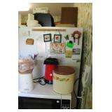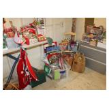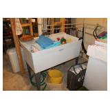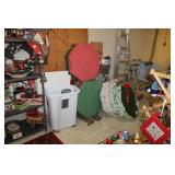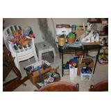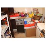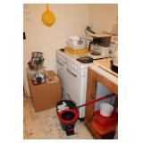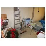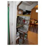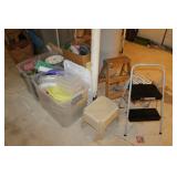 Plasticware Ladders Step ladders Kitchenware Decor Canning supplies Cleaning equipment Vintage Hotpoint refrigerator Vintage stove Kitchen electrics Vintage Panasonic stereo Christmas decor Halloween decor Stool Gift wrap Tools Sofa Mattress and boxspring Decor Pet carrier Spinning wheel Patio chairs Coolers books Toys Drop leaf table Vintage chairs