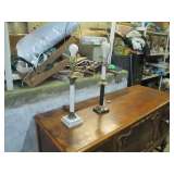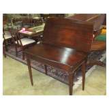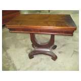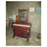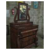 Oak one door wardrobe, banded inlaid double pedestal dining table withtwo 24" leaves; 8 straight leg Chippendale chairs; alot of Heisey, Higbee, pattern and cut glass; acanthus carved dressers and twin poster beds; 2 vitorian marble top dresser; oriental rugs; 54" pedestal dining table; pressed back oak chairs; wicker lamp table; teakwood, double sided library table; Empire half commode; period pine desk with cupboard top; pariod dropfront pine dovetailed desk ca 1800; 4 poster mah bed; marble top tables; Empire chest with sandwich glass knobs; period mah inlaid 2 piece corner cupboard; primitive baby pen and bed; flamed mahogany game table; Victorian captain's dekround oak pedestal table; oriental lamps; Persian oriental rugs; Bassett chest and glass top nite stand; Chippendale corner chair; double pedestal Duncan Phyfe d.r. table; entertainment desk and bookcase; depression glass; Iris and Herringbone; round Coca Cola advertising button; Fishtail Coca cola sign; bevelled mirrors; oi on board and canvass paintings; period Empire sofa; primitive dovetailed baby cradle; Empire dropleaf breakfast table; Blue bird bowl and pitcher set; antique informational gide books; Occupied Japan; flip top game table; cabriole leg carved oak server; occupied Japan cherry blind door corner cupboard; mantel clock; sterling flatware service Melrose pattern by Gorham; large walnut Victorian cylinder desk; Empire 3 drawer chest; Empire sleigh dresser with mirror; faux painted table top desk; Empire dresser with wishbone mirror; Empire secretary bookcase; early flamed cherry chest; large French carved mirror; 54" Mah empire d.r. table with 2 leaves; early cherry bed; large Limoges platter and plate; Occupied Japan wall pocket; art nouveau metal ash tray stand; Tiffin 3 piece depression console set; sheet music; scopes; double oak frame with reverse painted picture; pattern glass; Gem Dandy churn; celebrity photos; mantel clock; |